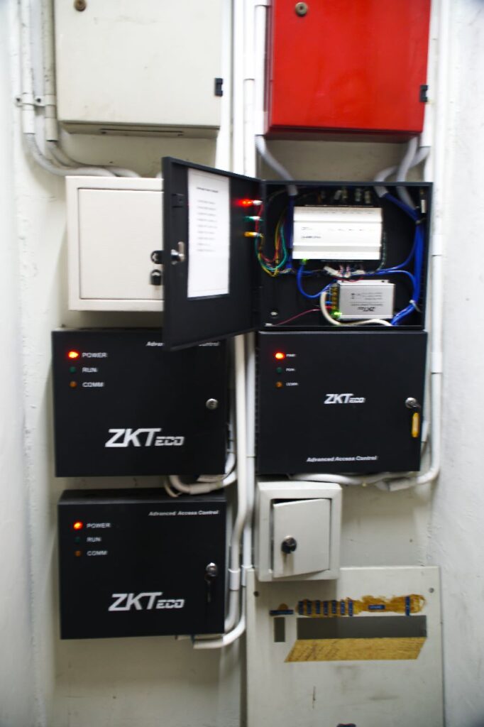 Enhanced security is a top priority. Our client requires full control over access to the apartment area, especially for entry into elevators and restricted building zones. To meet this requirement, an elevator access control system has been implemented, consisting of the following components: